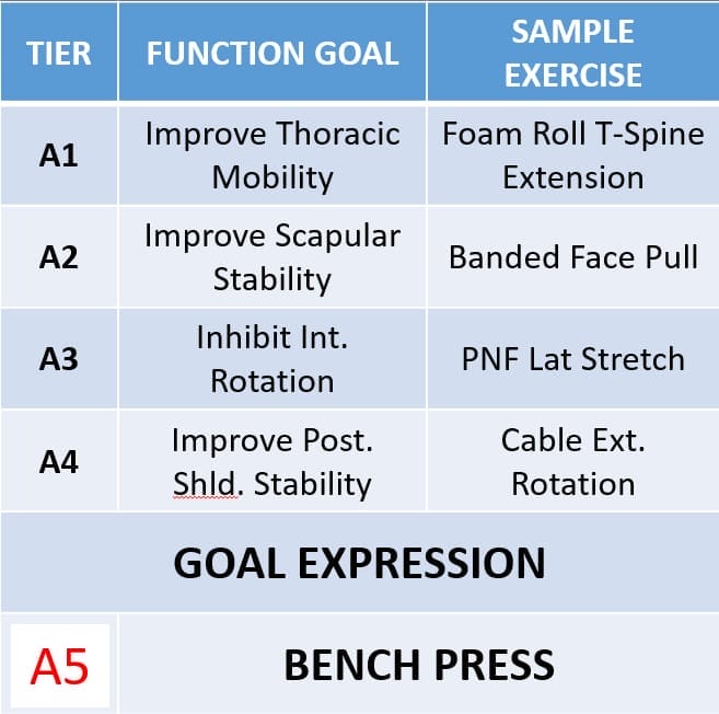 If you have a gym goer eager to get after it, I recommend building the warm up into their actual exercise series. It can feel like part of the main session but it’ll cover all the bases mentioned above. We’ll use the bench press for our example below: